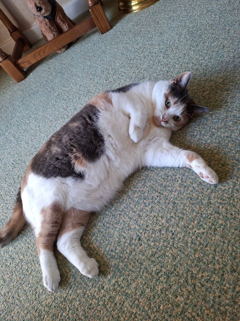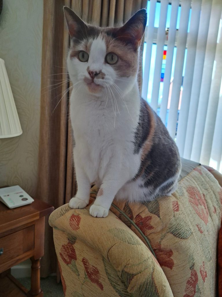 Sadly, her owner has gone into a care home. Mabel is a 7 year old female (spayed) cat. Pale tortoiseshell (Calico). Very friendly and affectionate with people, but due to a bullying cat next door, not so with other cats, so would want to be the only cat. Although she has not had recent contact, she could adjust to a calm dog. She is not keen on young children, but would be OK with older children. Not a house cat, but spends a lot of time indoors, therefore has poor road sense. Goes outside for toileting and enjoys the garden in summer. Due to poor health as a kitten, it became necessary to have all her teeth, except for her canines, removed. This has not stopped her from eating both dry and wet food (with relish), preferring dry. She can be a little picky, she has Royal Canin Fussy Cat Dry Food and Sheba Fine Flakes Poultry in jelly. Vaccinations up to date. (Barnhouse Vets) Microchipped.